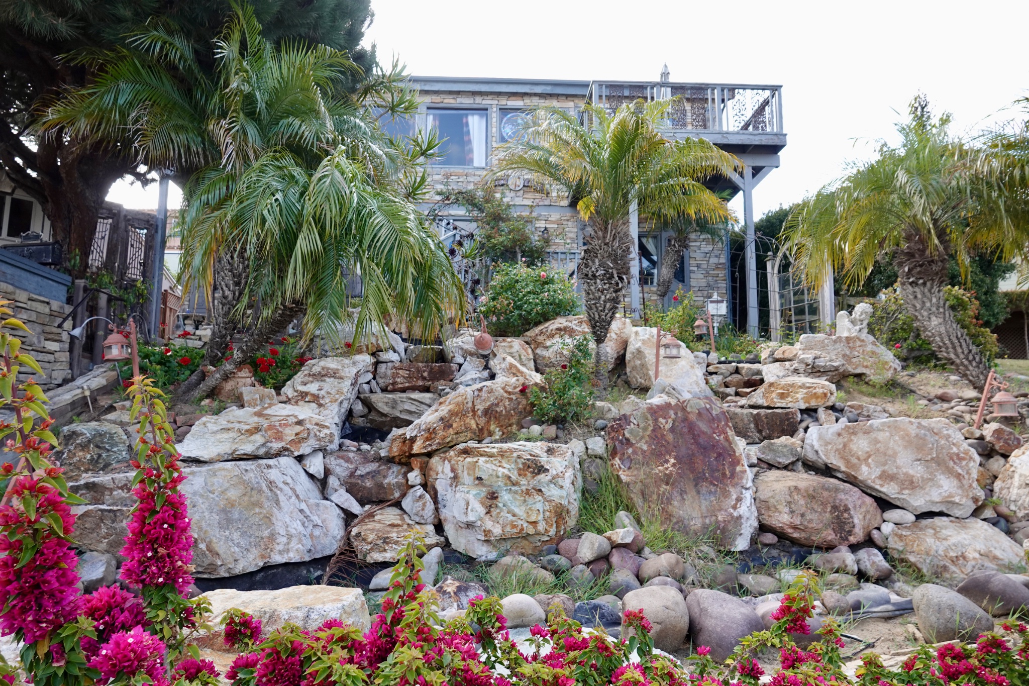 This rock-clad house used to have its entire front yard filled with cascading water. But they turned it off a few years ago. I might find a picture of the waterfalls if I look...
