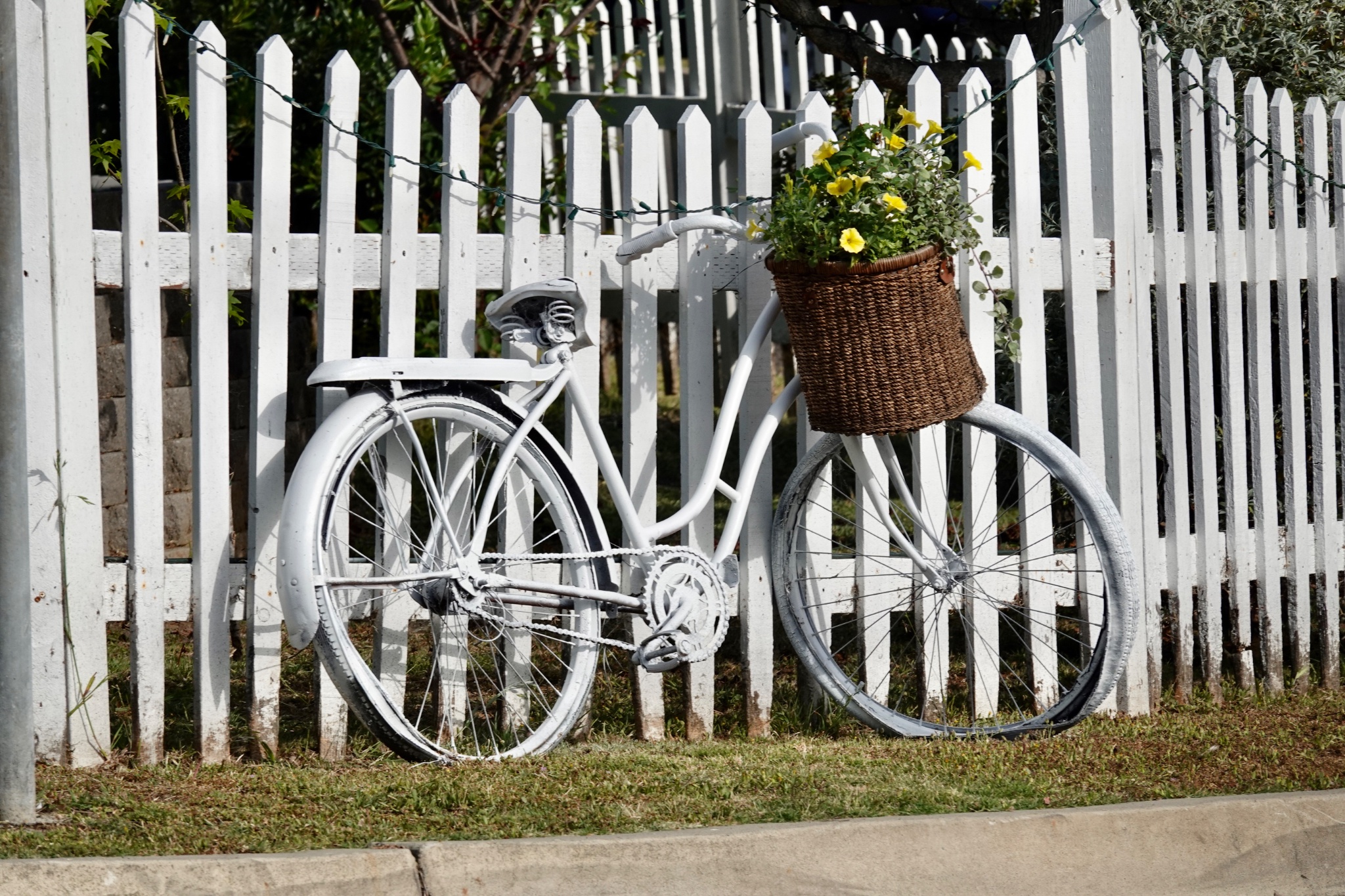 Forelorn bicycle now only suitable to hold a basket of flowers.