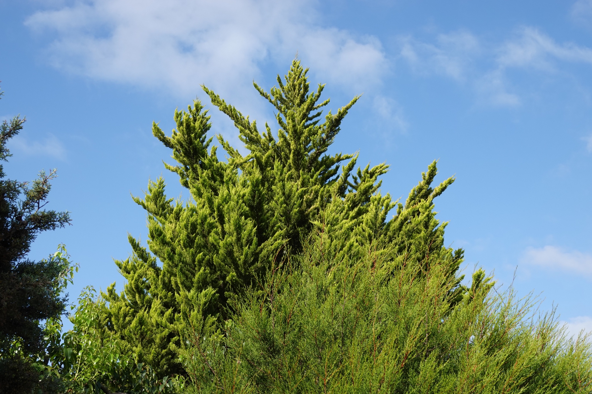 I noticed the similarity of the juniper bushes (above) and the roofline of this house (below) when all the homes around are more conventional in design,.