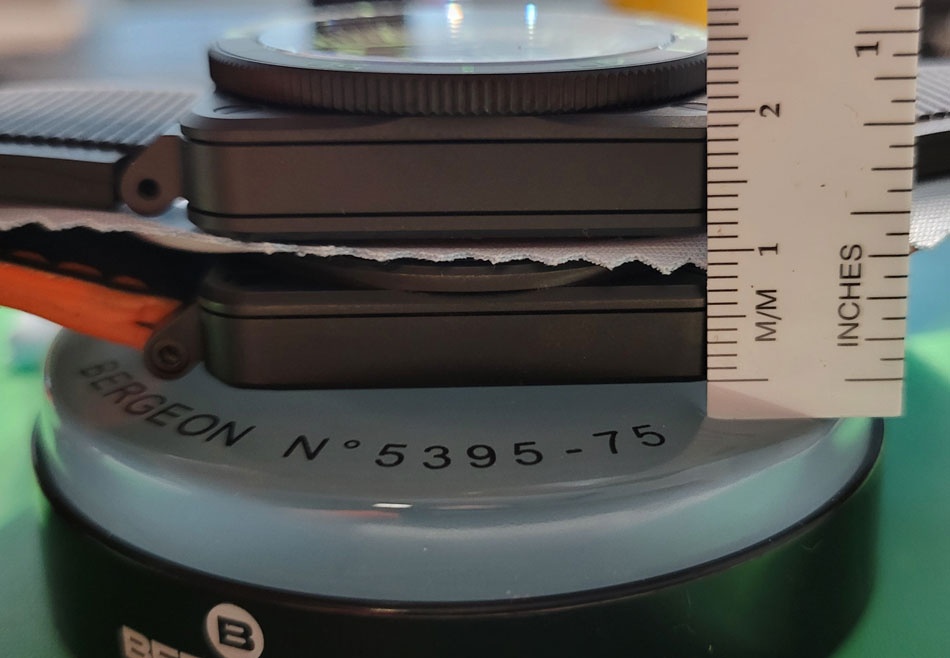 Something no one said in their review (that I can recall) is that Bell&Ross’ BR-03 Diver Lum Outline uses normal springbars (fat body, long pin) and not the hex bolt bar setup as on the company’s very first 42mm BR03 ever made (versus 46mm of that time) with ETA movement, I purchased from my AD in December 2006 (BR 03-92 with s/n ~1000). The old 03-92 metal case is thinner and lighter than the new BR-03 Diver Lum Outline ceramic (~11mm steel versus ~13.5mm ceramic). Sorry, I'm too lazy right now to weigh them both, though I’d guess 30% heavier for the larger ceramic Diver Lum Outline .