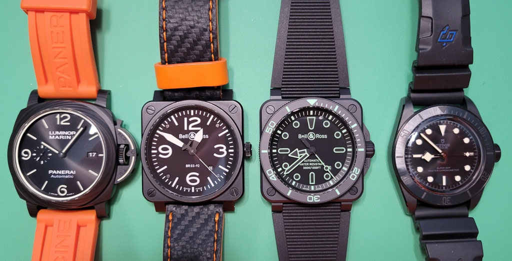 Love the new BR-03, and the price is virtually the exact same as the Tudor. Both are ceramic, yet the B&R also has date function. B&R outlines versus Tudor filled in lume, square case versus round. B&R ISO 6425 versus Tudor METAS. Sadly, neither has a matching ceramic bracelet option. Tudor’s 200m versus Panerai 1888 300m and B&R 300m. Love the feel of the rubber bit on the B&R’s crown, feels quite nice.