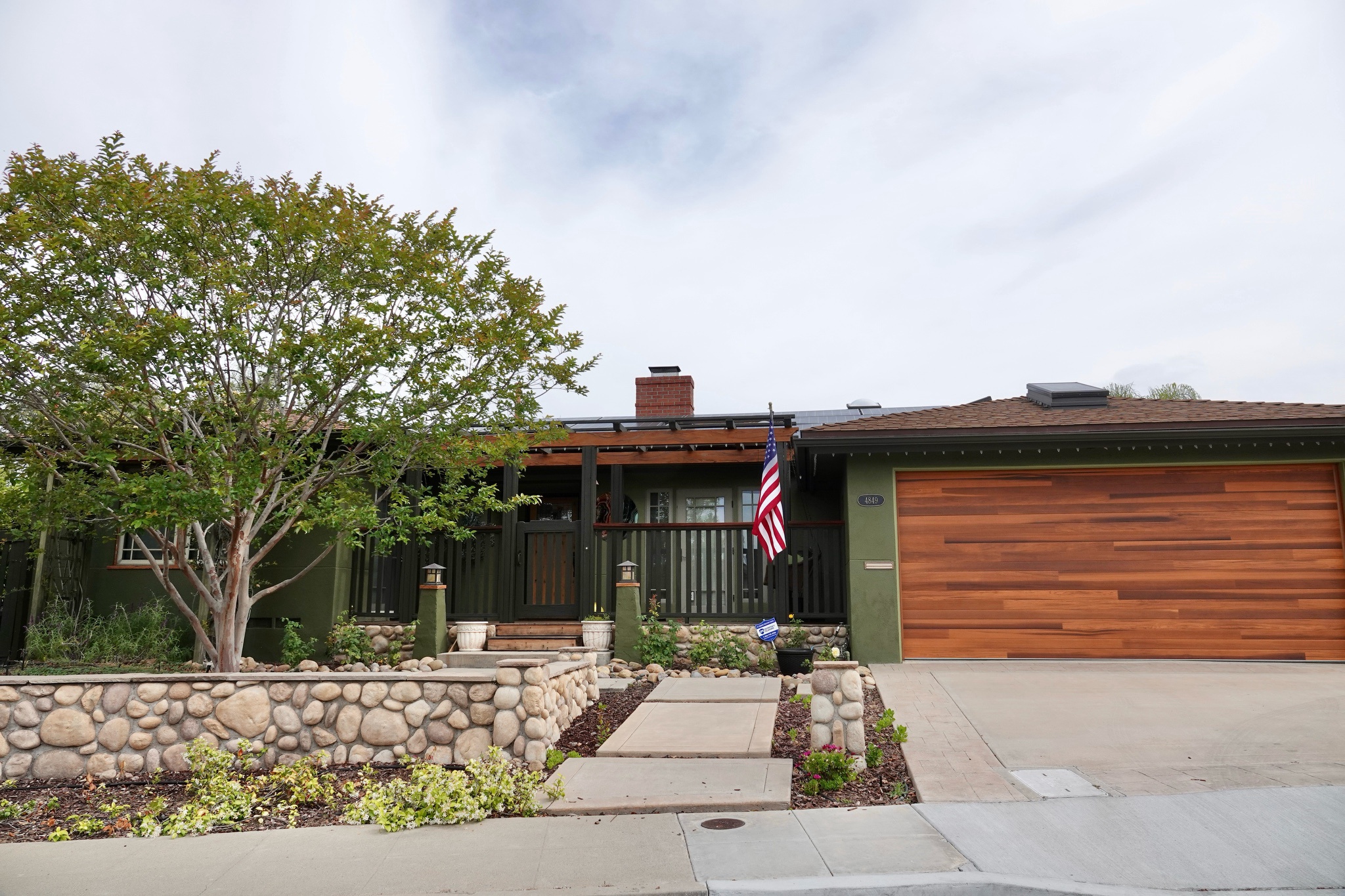 Rock wall, redwood garage door, flag. I have one of each at my house, now.
