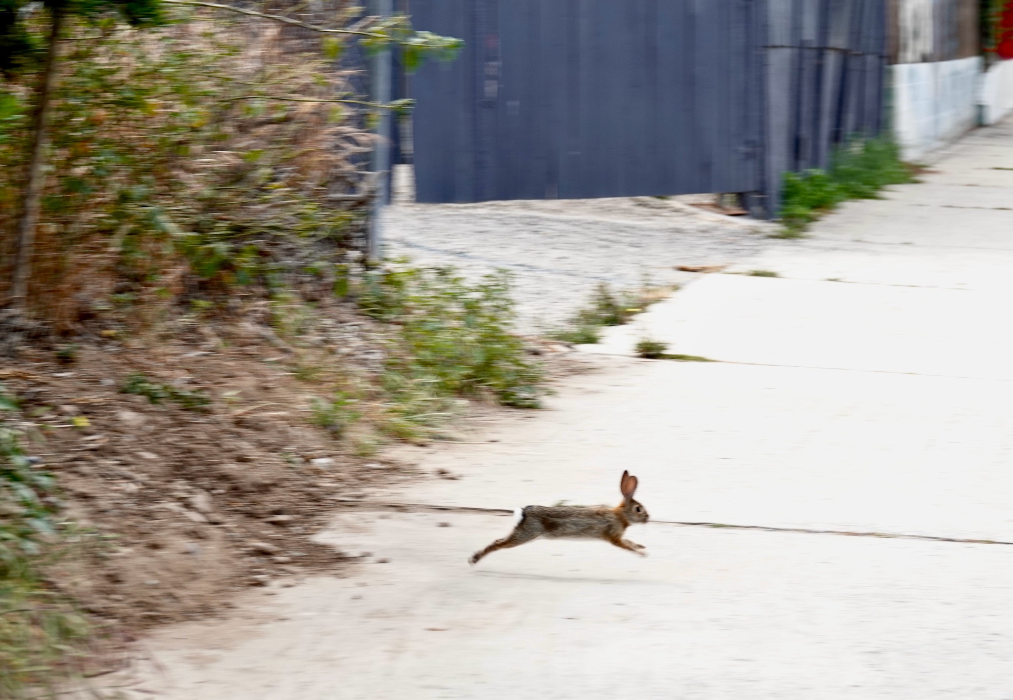 It’s not every day we see a rabbit — especially in mid-air! Yay, got him.