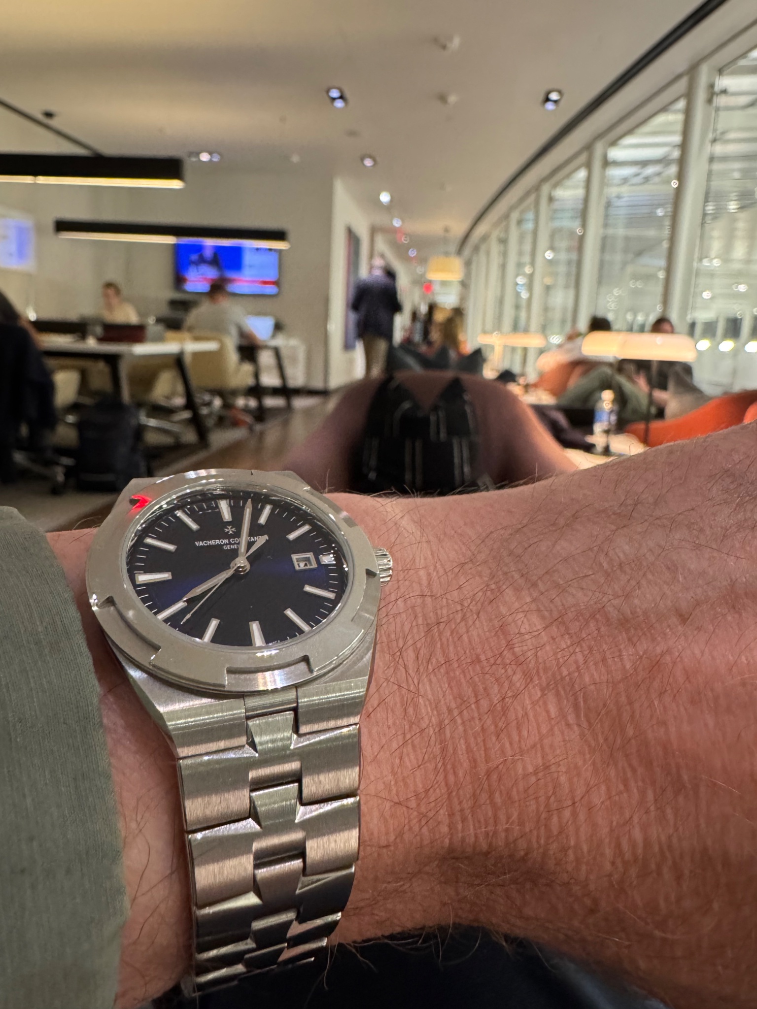 Orahau shares a Vacheron Constantin Evasion wristshot with an Americano. Discussion explores the watch's unique setting mechanism and collector joy.