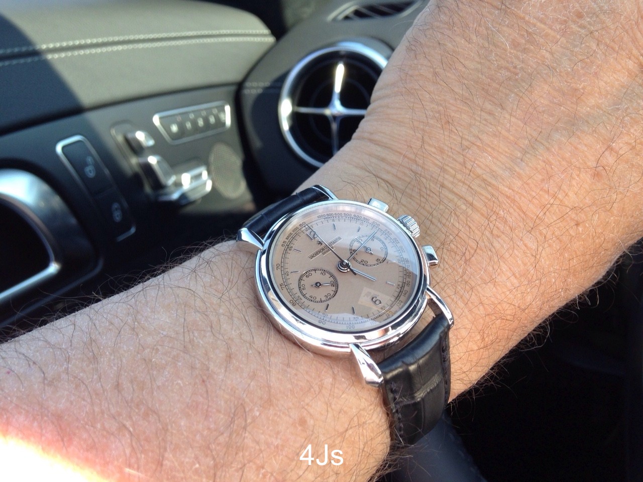 I have only seen it in plat white dial. I can't comment on other colors, but the salmon dial is similar to my 47101 Lemania chrono in platinum, and I love that combo. Again, any combo, based on taste will work IMO
