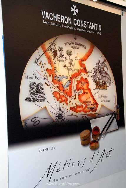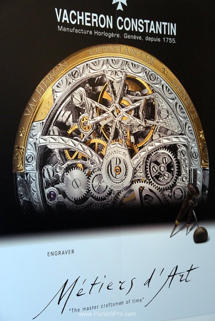 The basic message of this exhibit is to spread the word of Vacheron's use of traditional watchmaking crafts such as enameling, guillochage, master-watchmaking, engraving, and decoration in both historic and modern watches.