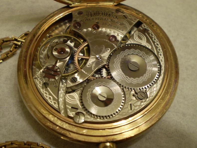 Are you referring to the wavy lines? It's quite typical of the Waltham railroad pocket watches. Hopefully this picture will post: I recall, in my travels and conversations, that it was done on a machine similar to a pantograph with a small rotating sandin...