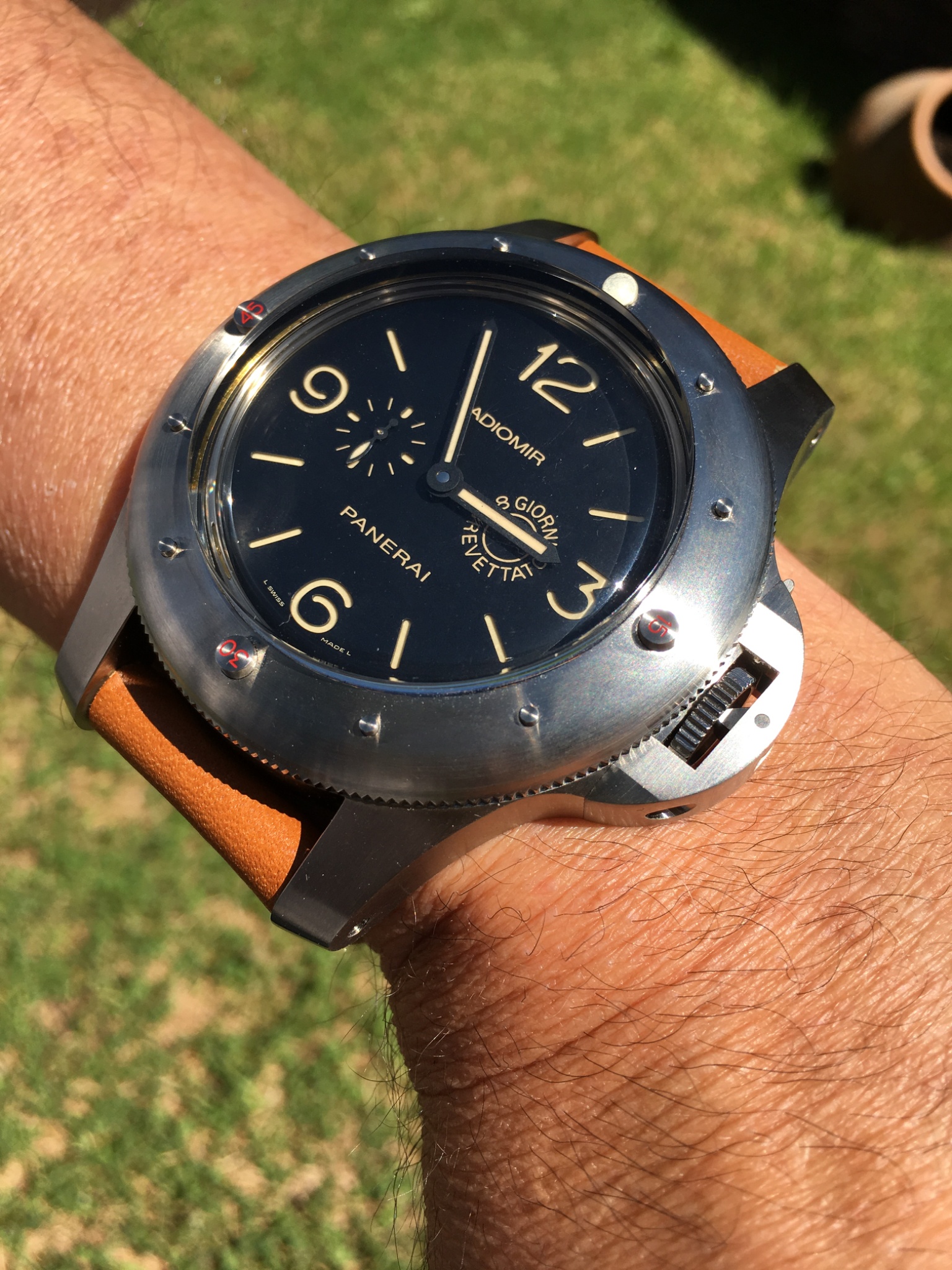 The watch looks outrageous on my thin wrist and I only have worn within the walls of my home. Anyway I love it and find a lot of joy just looking it on my desk as a big clock and I feel honored to own it in my collection.